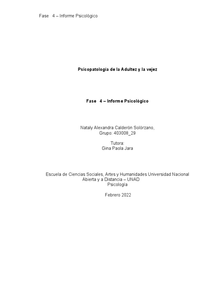 Informe psicológico sobre un paciente con alcoholismo y delirium tremens PDF Alcoholismo