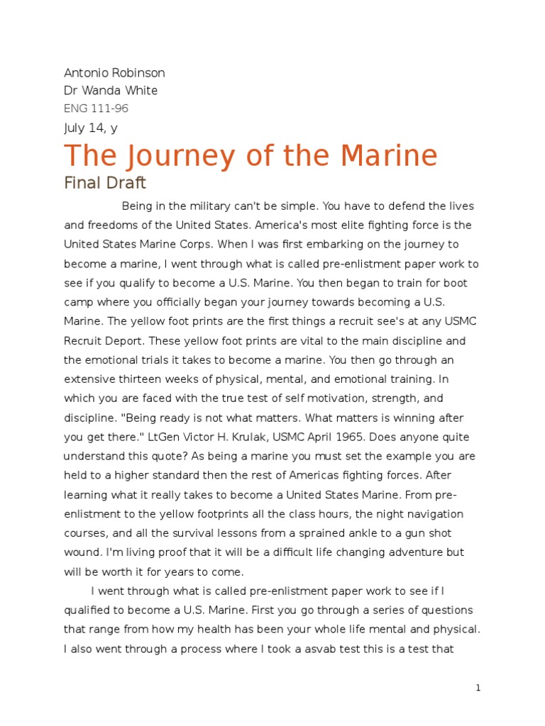 The Journey of the Marine Final Draft United States Marine Corps