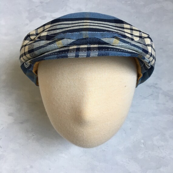 Boys Blue Newsboy Hat // flat cap for boys plaid hat with brim