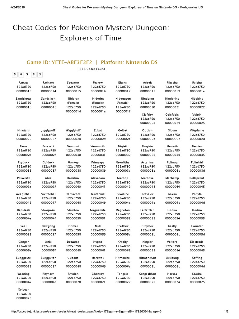 Cheat Codes For Pokemon Mystery Dungeon Explorers of Time On Nintendo DS Codejunkies US7