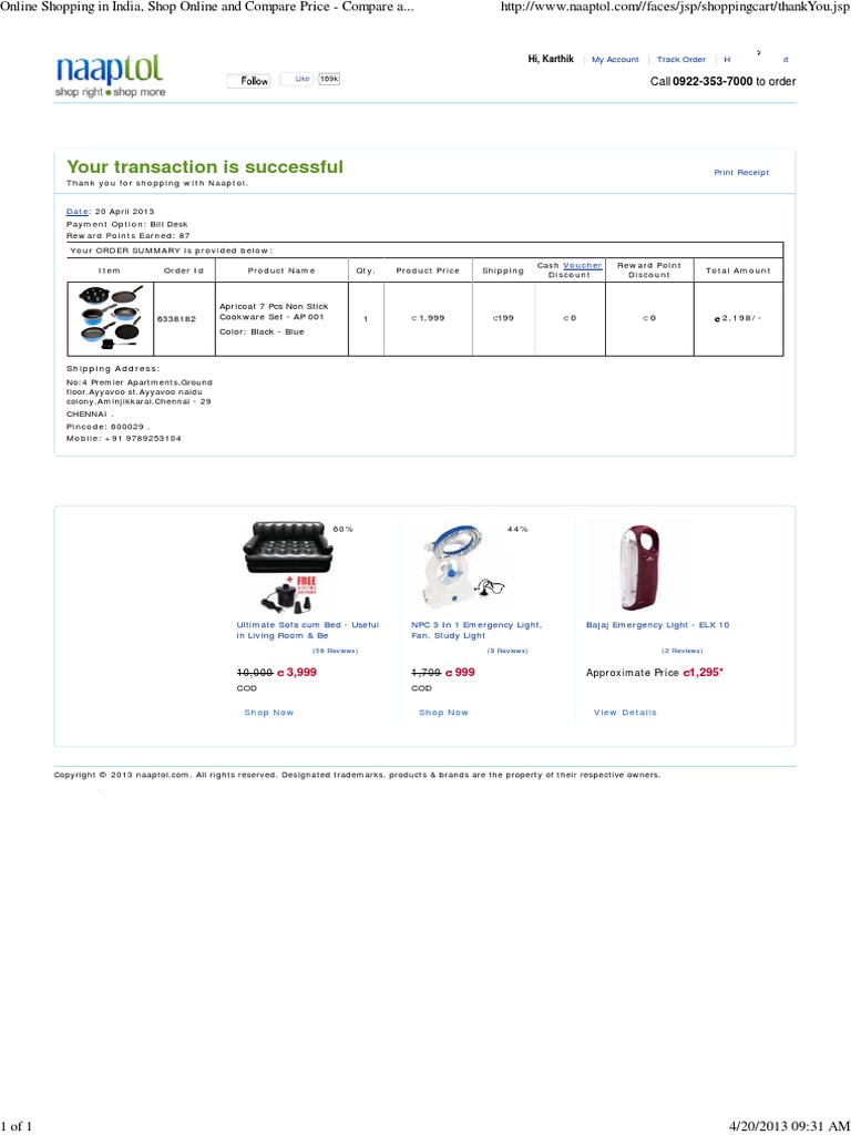 Naaptol Order Id 6338182 PDF
