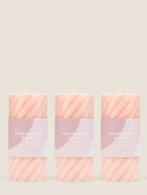Pink Strawberry Blush Twist Pillar Candle Set of 3 at ASDA