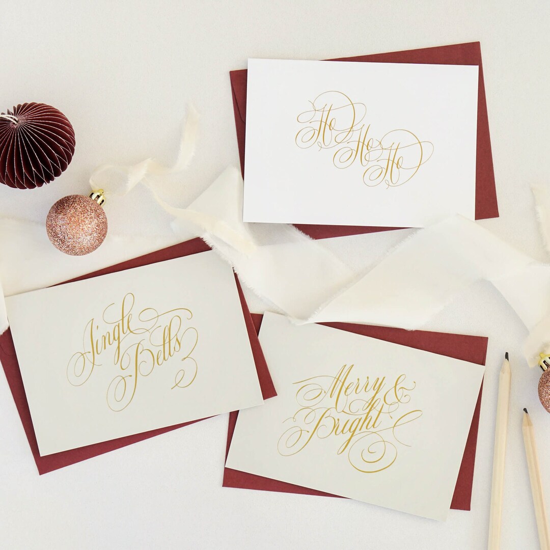 Luxury Gold Foil Christmas Cards With Calligraphy Etsy