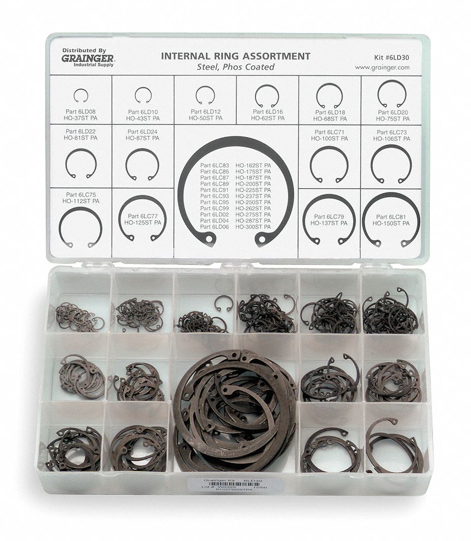 GRAINGER APPROVED Retaining Ring Assortment Internal, Metric, Carbon
