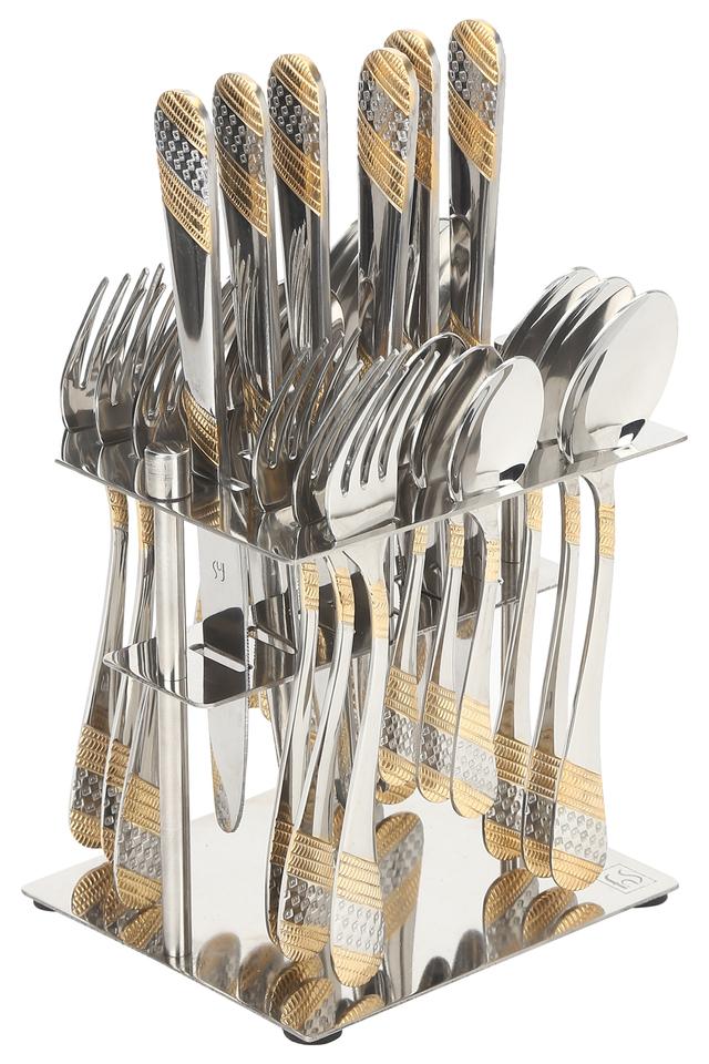 Buy FNS Colour Block Metallic Spoon Fork and Knife with Holder Cutlery