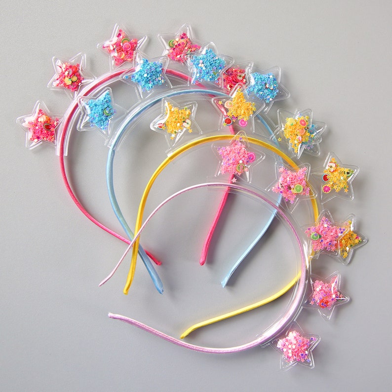 Confetti Sequin Headband This half inch headband is made from white velvet fabric layered with rainbow spangle confetti sequin fabric. These headbands fit sizing 2 years up to 99 years. All of these items include handmade top knot headbands from brynnbands! Every mavi band comes with a lifetime. Stars are attached to a hard headband. These are a brand new item! This half inch headband is made from white velvet fabric layered with rainbow spangle confetti sequin fabric. Get ready to party with this glittery, confetti sequin transparent star crown headband.