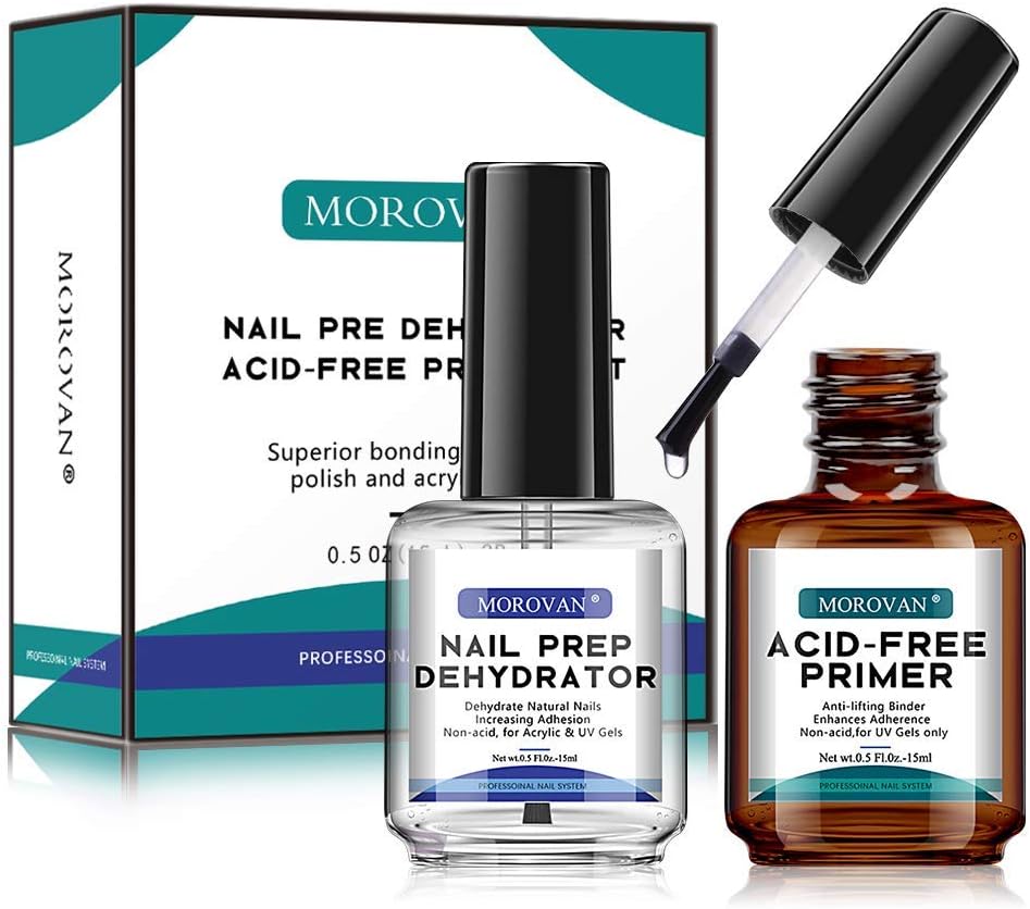 Morovan Nail Prep Dehydrator and AcidFree Nail Primer Superior Bonding