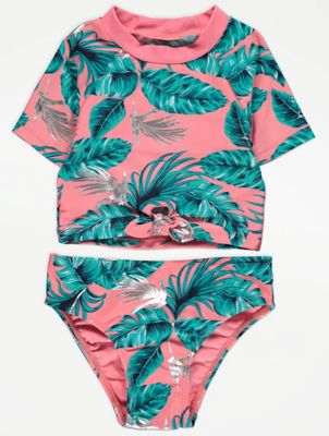 Pink Tropical Short Sleeve Bikini Set Kids at ASDA