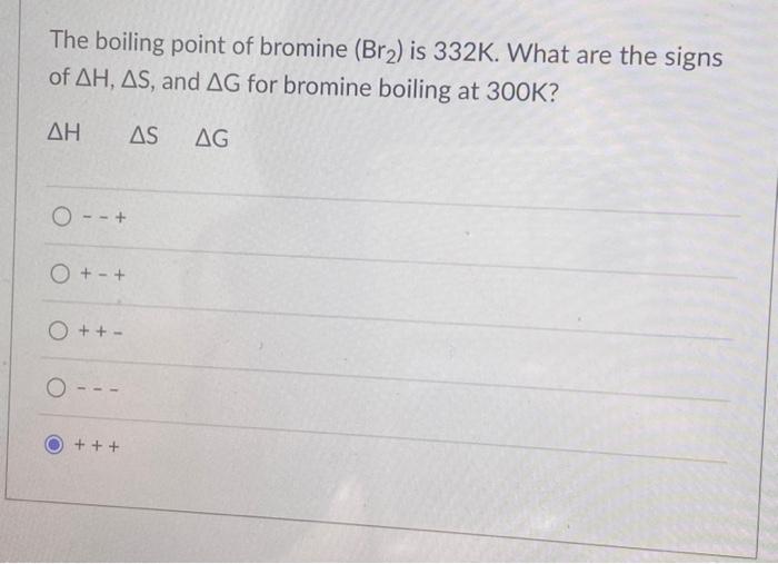 Solved The boiling point of bromine (Br2) is 332 K. What are