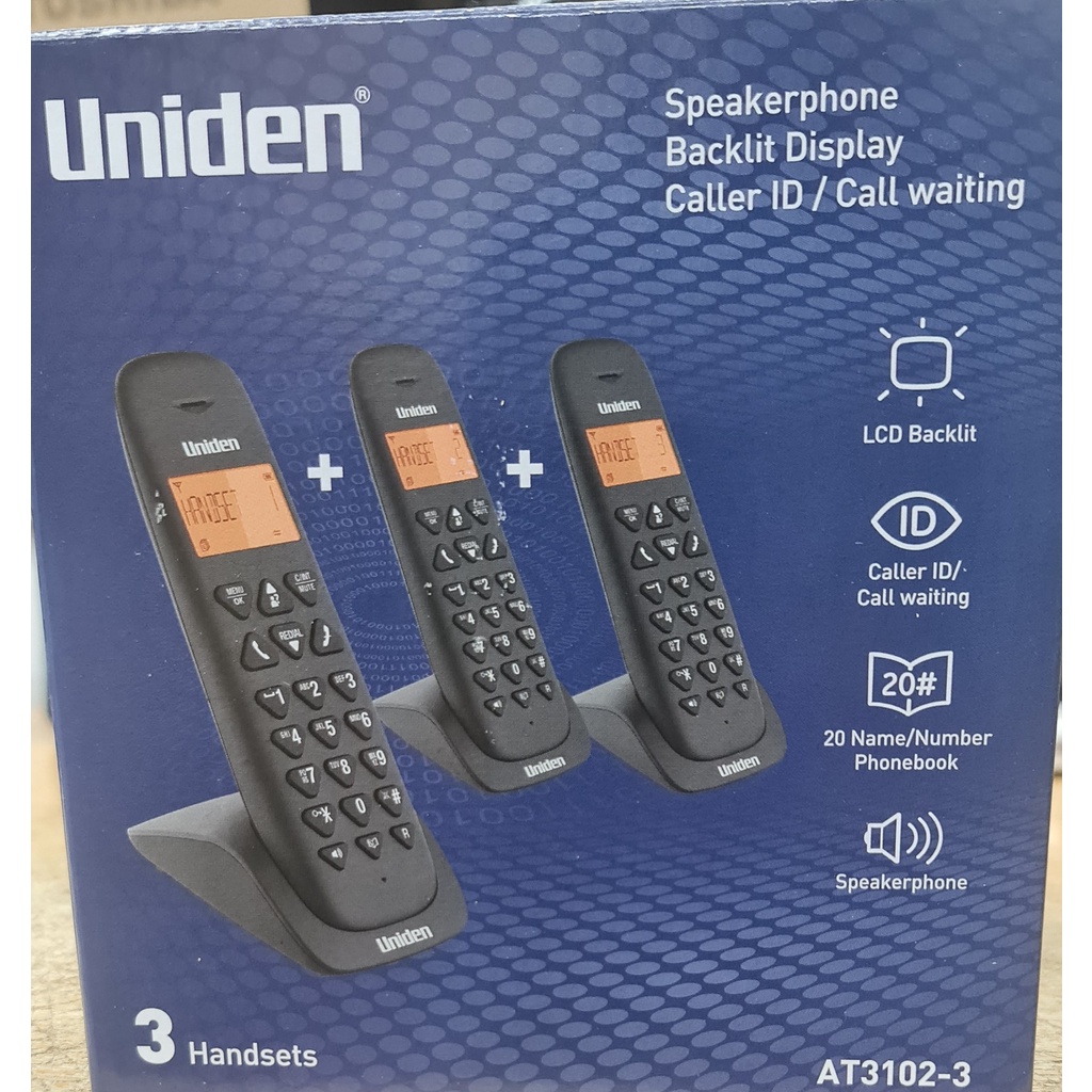 Uniden AT31023 Triple Handsets Cordless Phone Black (3 CORDLESS
