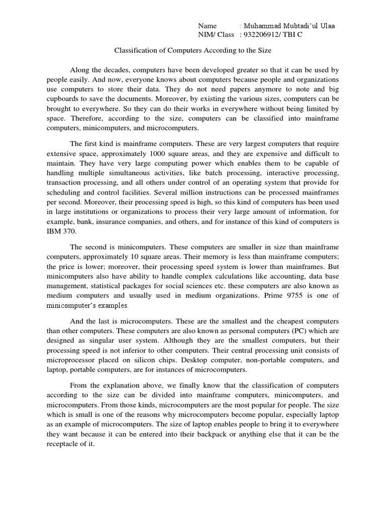 Example of Classification Essay PDF Mainframe Computer