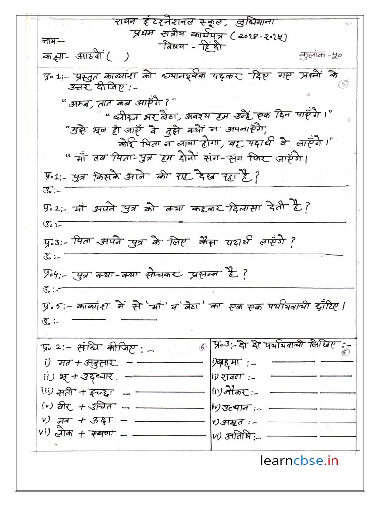 CBSE Class 8 Hindi Sample Paper Set Q Cbse Class 8 Hindi Sample Paper 2022 3 घ ट पर ध क: The cbse class 8 sample paper consists of the topics that cover the key concepts, resources and activities. Cbse sample paper for class 8 hindi with solutions. Latest cbse sample paper hindi class 8 in pdf as per latest current year cbse, ncert, kvs examination pattern and blueprints with solutions. Class 8 sample paper. Cbse Class 8 Hindi Sample Paper 2022.
