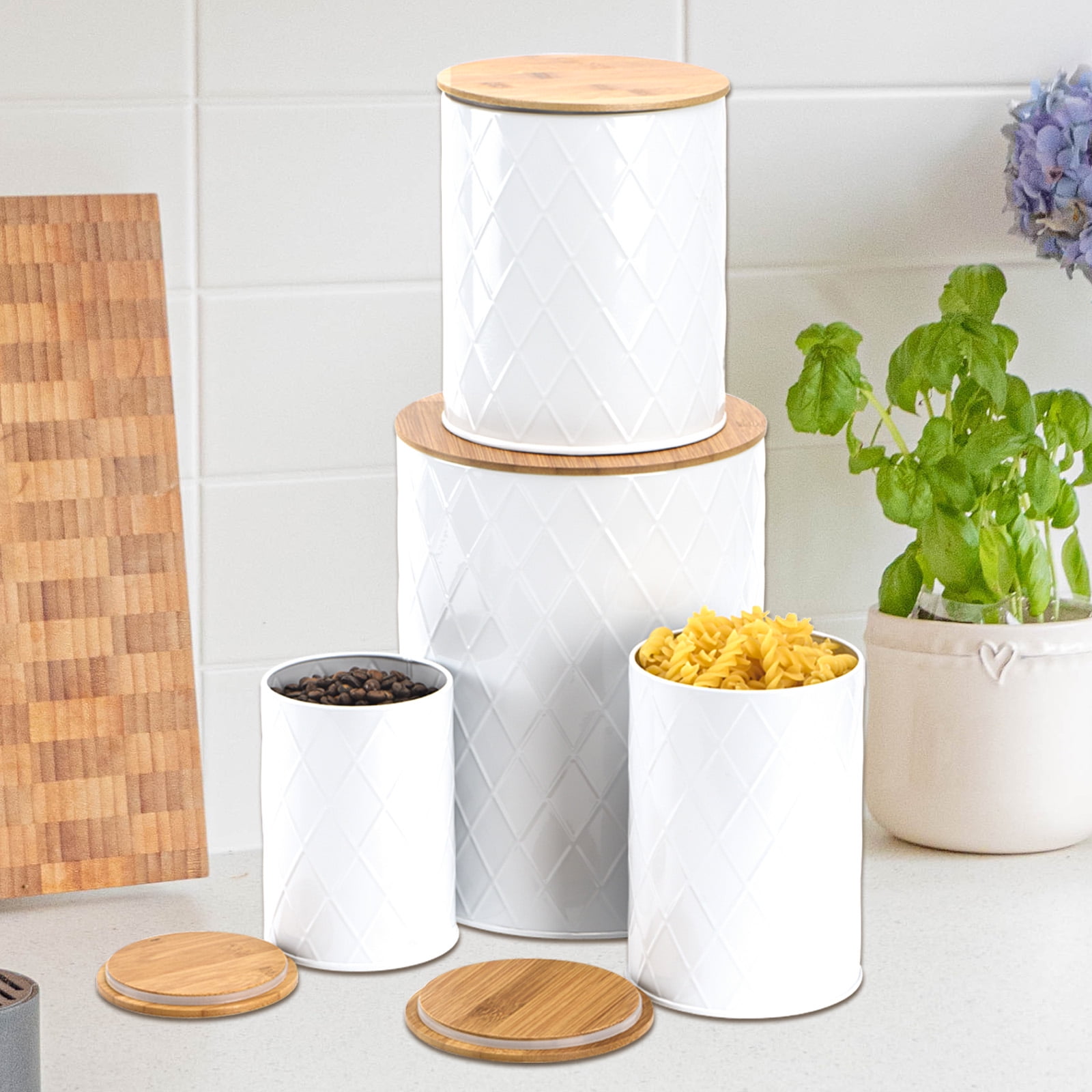 Kitchen Canisters Set White white canister sets for kitchen counter, kitchen canisters set of 6, flour and sugar containers, coffee and tea storage,. kitchen canister set (set of 3) shop wayfair for the best kitchen canister sets white. check out our white kitchen canister set selection for the very best in unique or custom, handmade pieces from our. Enjoy free shipping. Kitchen Canisters Set White.