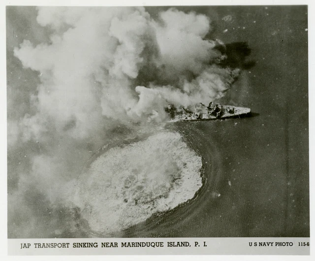 JAPANESE CARGO SHIP sinking Marinduque Island Philippines WWII OLD