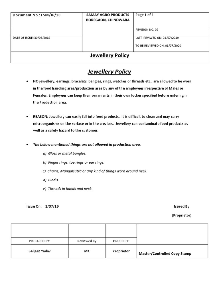 Jewellery Policy PDF