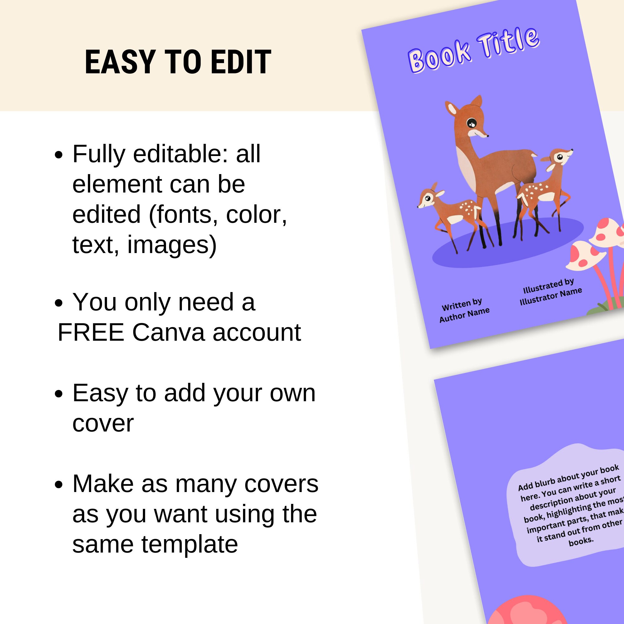 Cute Kids Animal KDP Book Cover Kindle Cover Template KDP Cover Premade