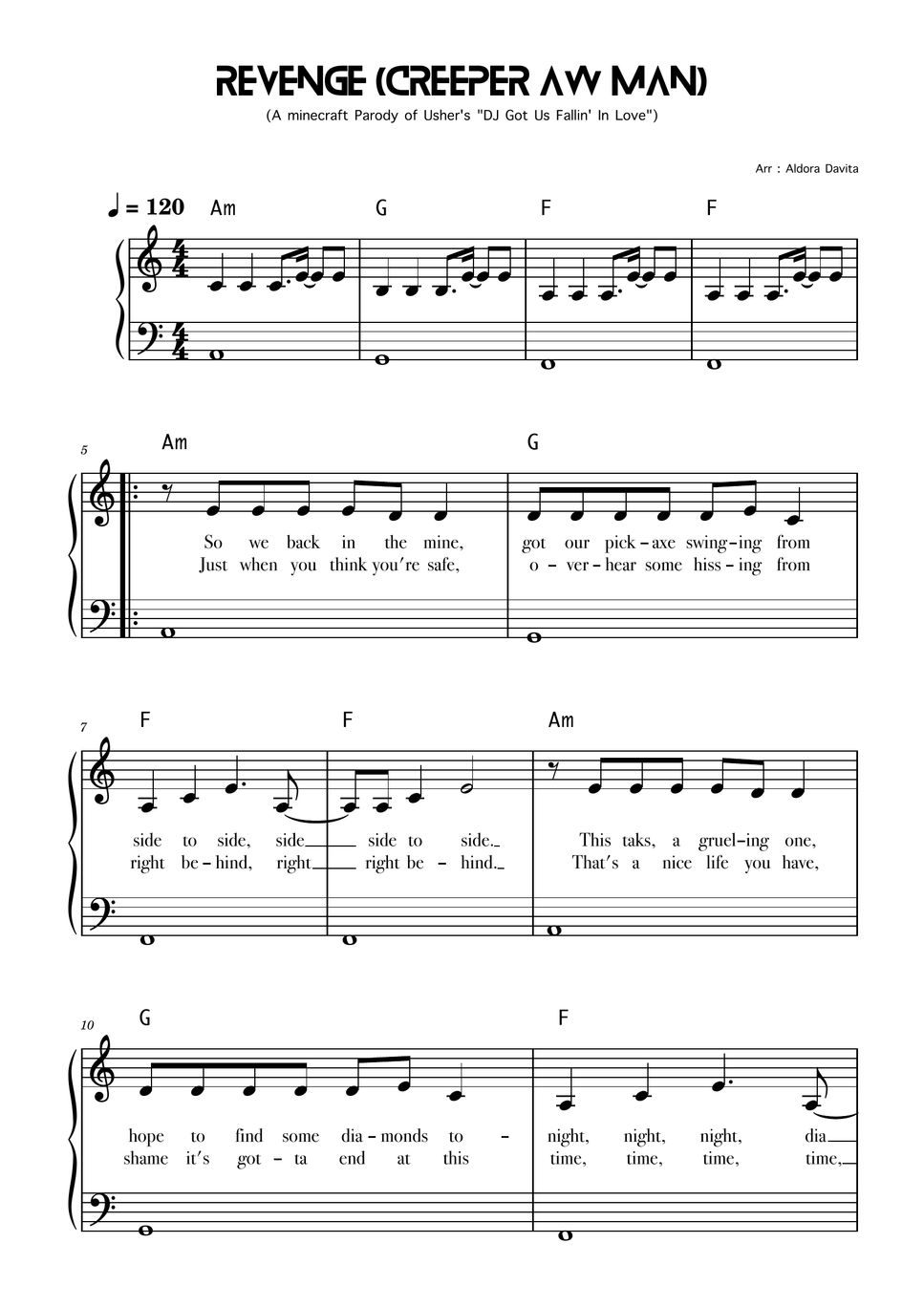 Minecraft Revenge (Creeper Aw Man) Sheet by Aldora Davita