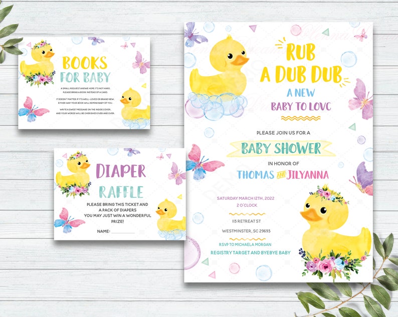 Gender Neutral Baby Ducks Invitations, Boy Girl Rubber Duck Baby Shower