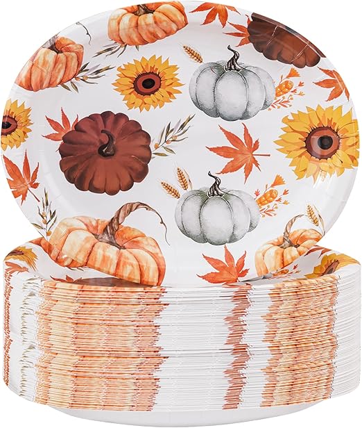 WDF 100 Pack Thanksgiving Plates Paper 10" x 12" Pumpkin