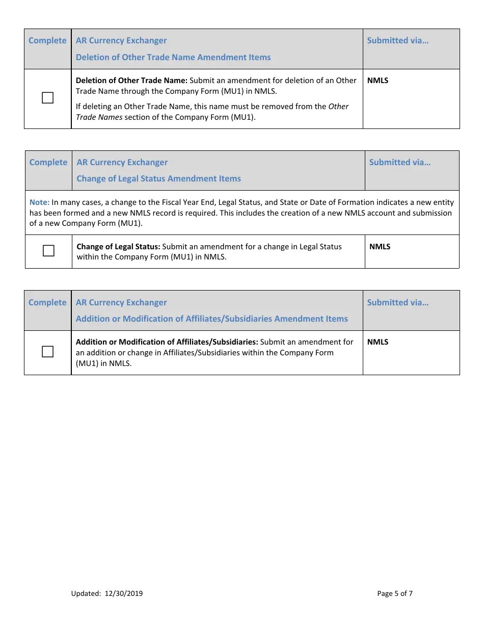 Arkansas Ar Currency Exchanger Amendment Checklist Fill Out, Sign Online and
