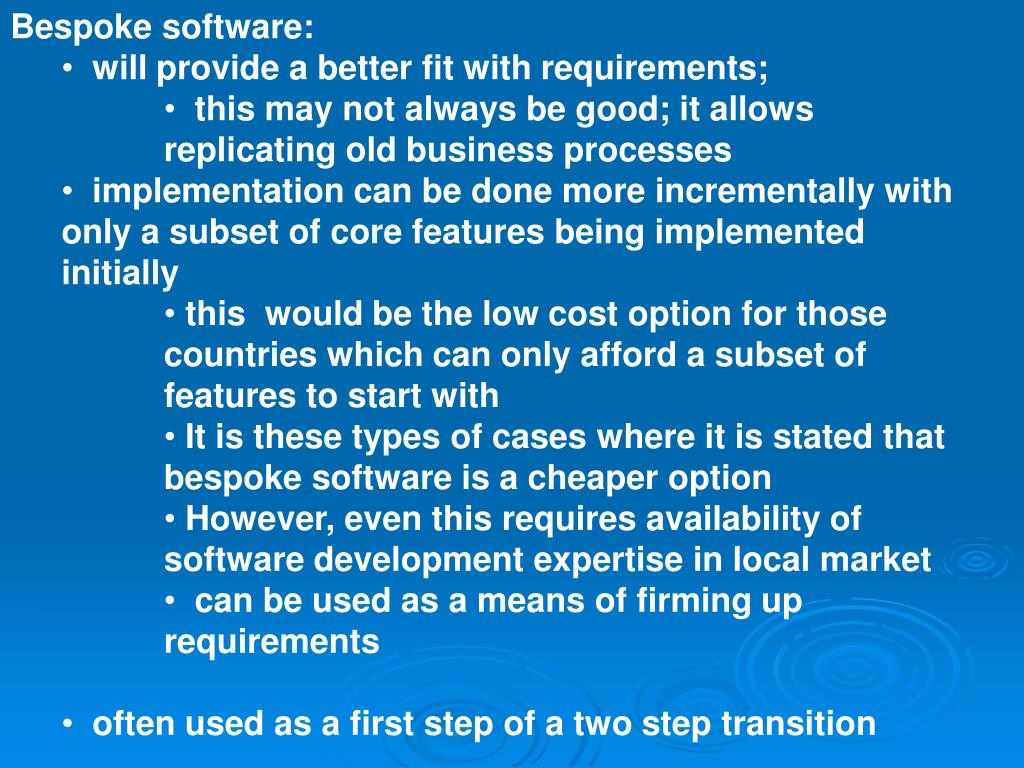 KPASIME MEKENZE TYPES OF SOFTWARE (COTS) AND BESPOKE.pptx Bespoke Application Vs Cots Delivery speed cots solutions are faster; This type of software development process is. I often find it necessary to explain the pros and cons of the two approaches, both of which are perfectly valid in the right circumstances. We’ve compared cots and bespoke software in a few key areas: In this guidebook, learn more about: Why each has its own. Bespoke Application Vs Cots.