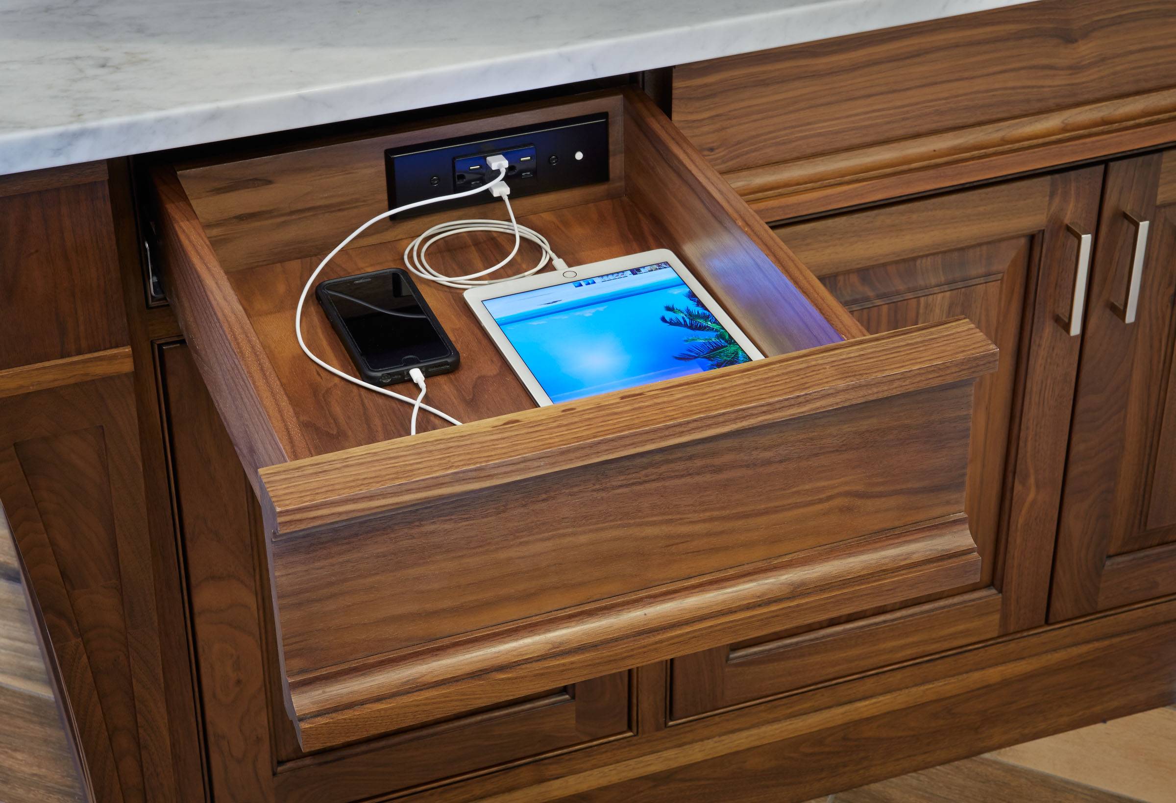 Custom Charging Station in Drawer Classique Chic Cuisine Cleveland par Cynthia J Charging Station On Drawer We first realized that a charging drawer was an option when we were going through the kraftmaid booklet while shopping for our. Specially designed to work in both framed and frameless. With the charging port in place, you can plug in your cords or store them neatly in the bottom of the drawer, then simply pull the. Turn any drawer. Charging Station On Drawer.
