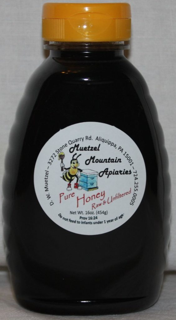 1 Pound Dark Honey Squeeze bottle Muetzel Mountain Honey