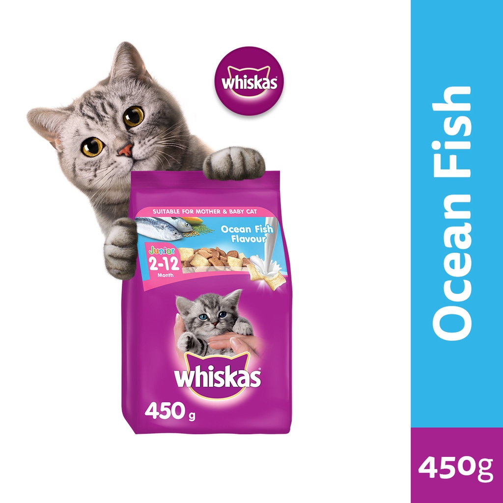 WHISKAS Junior Dry Kitten Food Ocean Fish Flavor with Milk, 450g. Pet