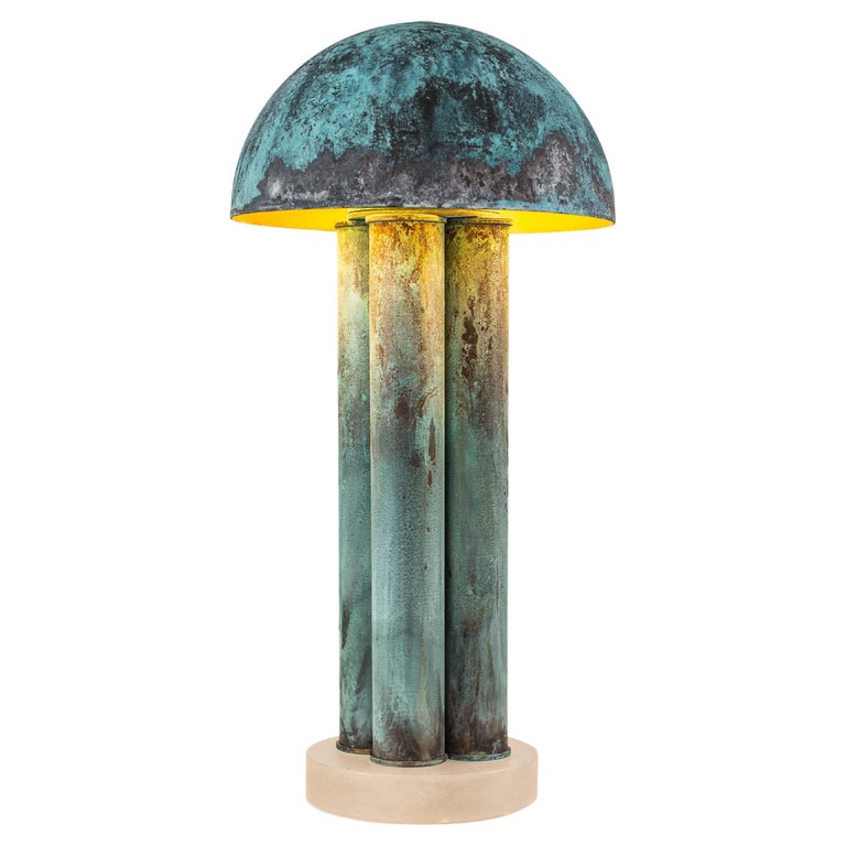 BAR Table Lamp, Contemporary Lamp, Verdigris, Brass, Alabaster by Kalin