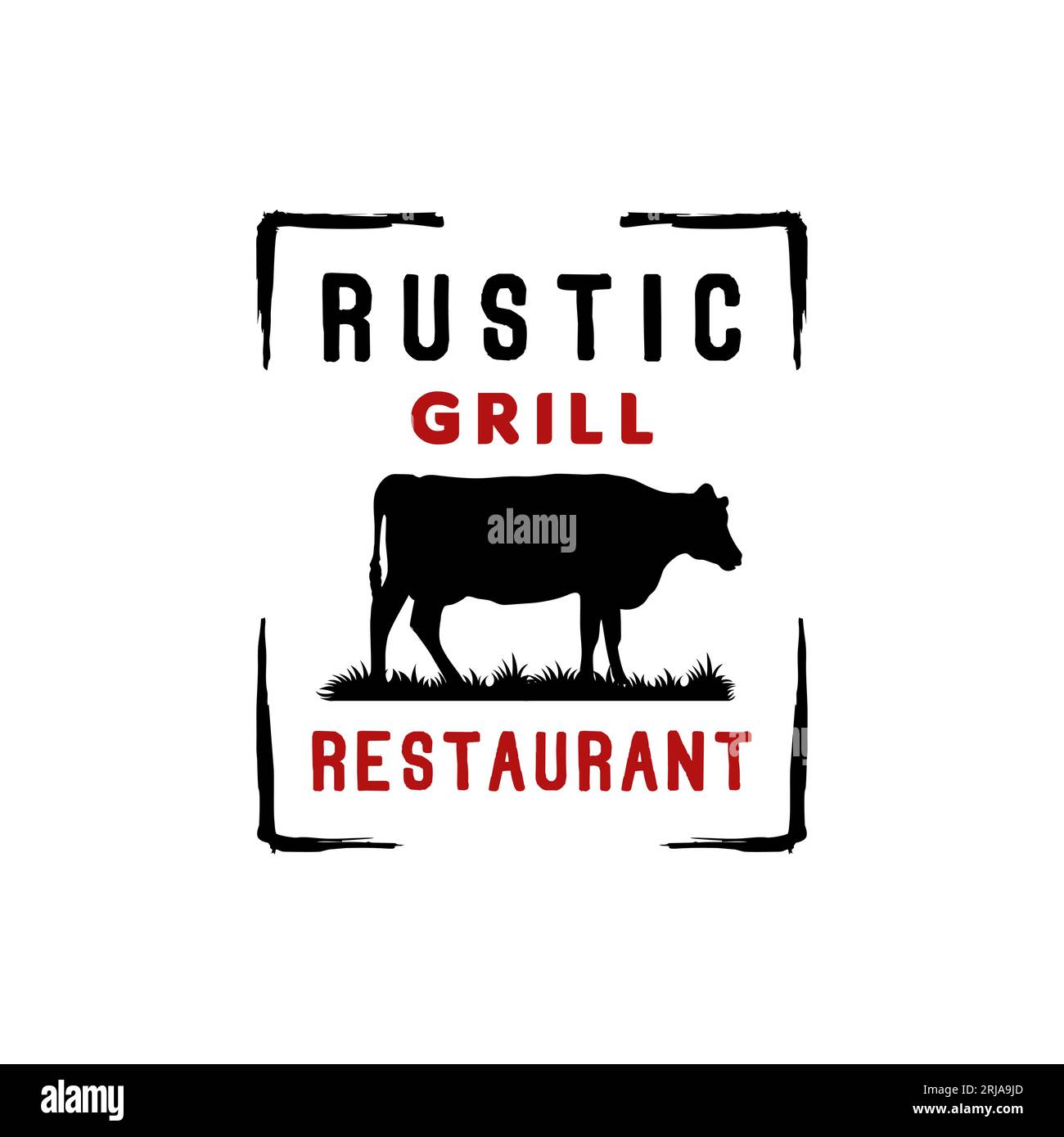 Angus Bull Cattle Farm Ranch Beef Grill Barbeque BBQ Logo Design