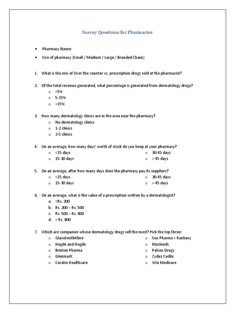 Pharmacy Survey Questions Pharmacy Pharmaceutical Industry