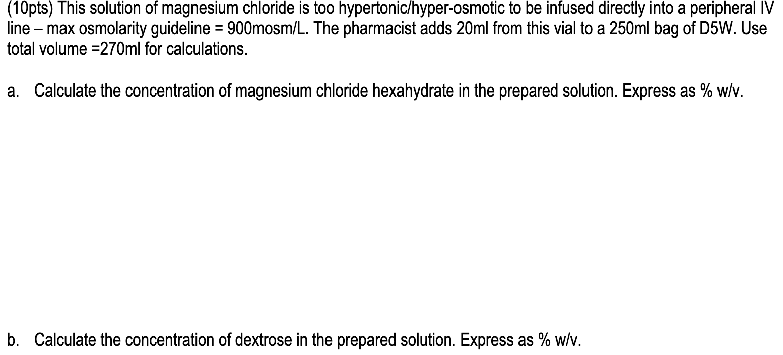 Solved (10pts) This solution of magnesium chloride is too