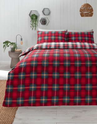 Red Tartan Brushed Cotton Reversible Duvet Set Home at ASDA