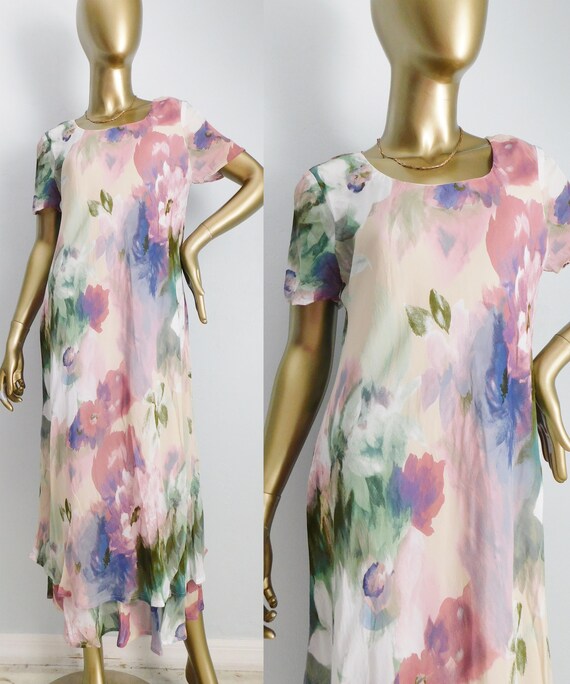 vintage watercolor floral dress \ pastel maxi dress \… Gem