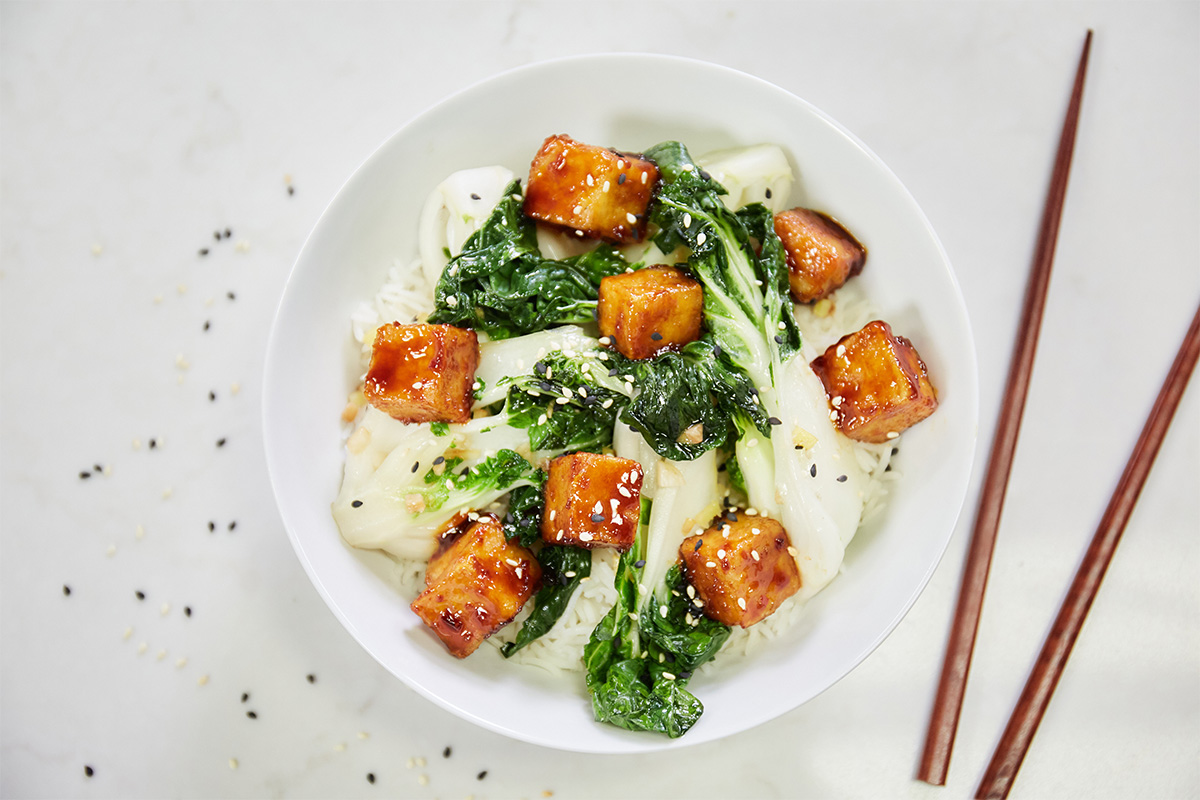 Weeknight Vegan Dinner Idea SkilletGlazed Tofu with Bok Choy SavvyMom