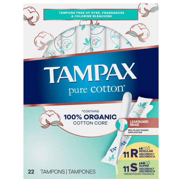 Save on Tampax Pure Cotton Core Tampons Regular & Super 100 Organic