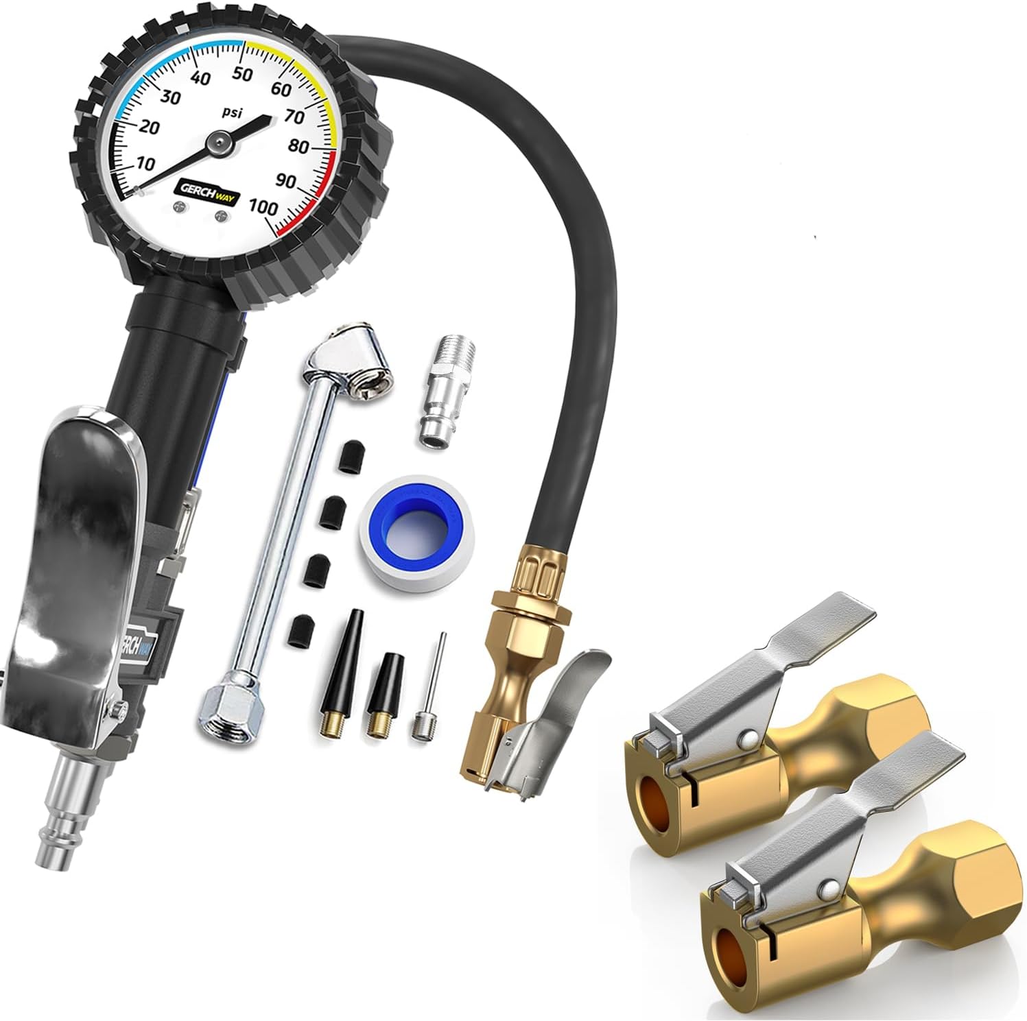 EDCB 2 Pcs Tire Pressure Gauge Heavy Duty 255 PSI Air Chuck with Gauge for Air Compressor Tire Air Chuck With Gauge Tire air chuck with gauge. digital tire pressure gauge with inflator, improved leaks protection, 200psi air chuck with pressure gauge and air compressor. check tire pressure and add air anytime you need with the husky tire inflator with gauge. This convenient unit combines an inflation gun, air chuck and pressure. this convenient unit combines an inflation gun,. Tire Air Chuck With Gauge.