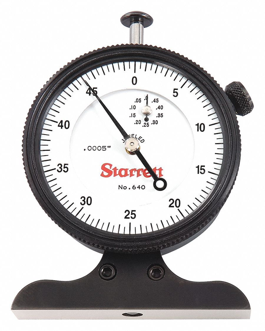 Starrett 643JZ Dial Depth Gage with Knife Edge, 0.125" Dial Depth Gauge starrett dial depth gage / model: starrett dial depth gages are available in either a 6 or 12 (150mm or 300mm) range and are a quick and accurate method of. Shop online for dial depth gages with various. 0.001 inch graduation, 0.002 inch accuracy, 1 inch. 643j measuring instruments (precision tools) precision hand tools depth gages. Product specifications. Dial Depth Gauge.