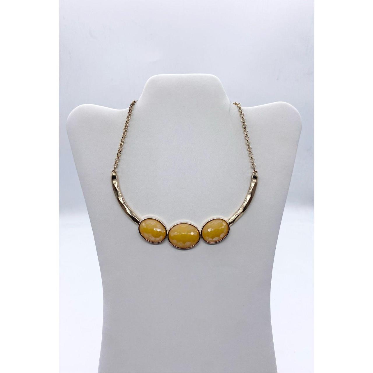 Golden mustard yellow three large gemstone and gold... Depop