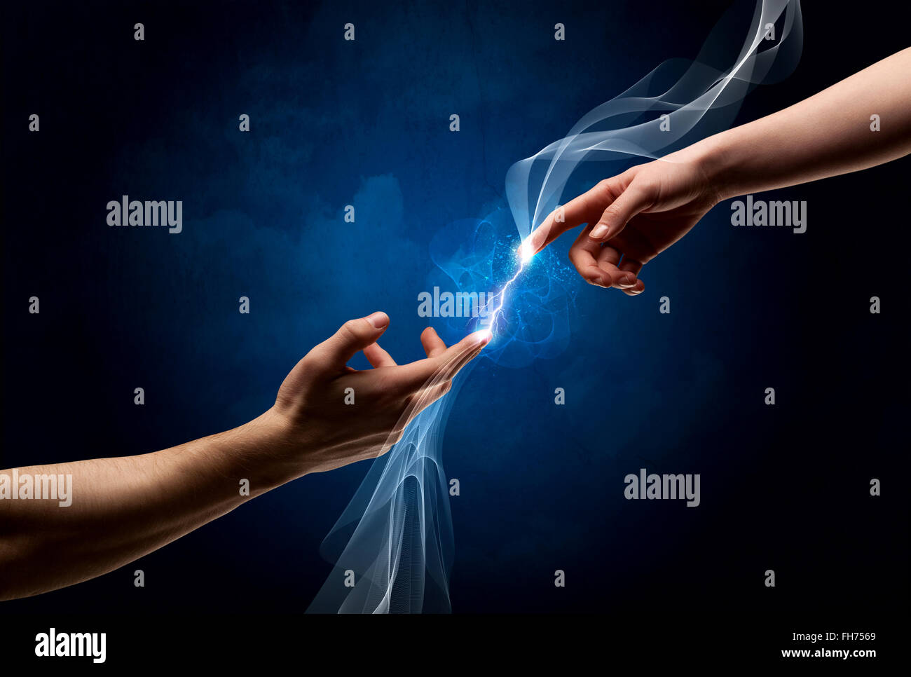 Hands connecting through fingers in space Stock Photo Alamy