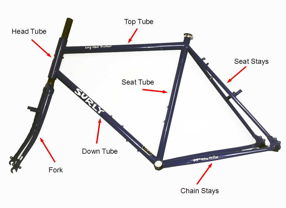 Frame with labeled parts Bicycle Frame Tube Names It is used to connect the handlebars/stem and the fork. Names of bicycle fork parts and types of headset bearings. At the bottom of each geometry feature, i have incorporated a comparison between a road, cyclocross and touring bike with 57cm top tube. A headset is used inside the tube which is basically the bearings which allow free movement. The. Bicycle Frame Tube Names.