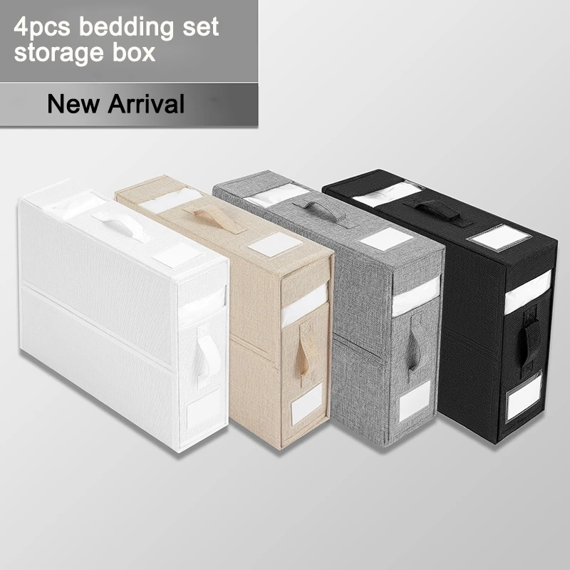 4Pack Folding Wardrobe Storage Box Plastic Drawer Bedding Set Organiser Tahavice bed sheet organiser, 3 pack bedding storage box with handle and clear window, foldable bedding organiser for bedding clothes. Bedding storage box, foldable bed sheet set organiser, foldable closet storage with handle, breathable bed sheet organizers, 2 sheet. Save time and stay organized with our bed sheet set organizer. No more messy linen closets, pulling out the wrong size. Bedding Set Organiser.