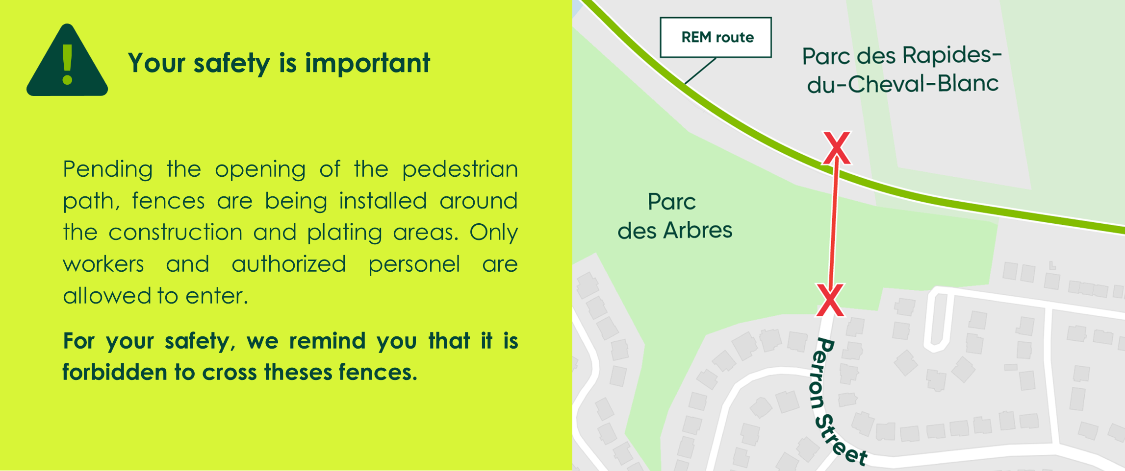 Maintenance of the obstruction of the pedestrian path under the REM
