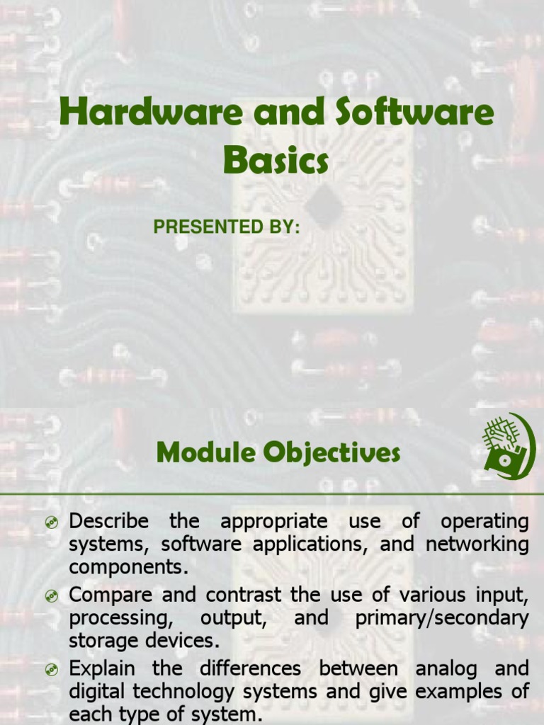 PPT Hardware and Software Basics PowerPoint Presentation ID207280 Hardware And Software Basics — learn the basics of computer hardware, software, operating systems, networks, and programming languages with this. learn the basics of computer hardware and software, operating systems, networks, and internet in this online course. a pdf file that introduces the basic concepts and history of computers, such as hardware, software, input and output devices, ports,. — learn. Hardware And Software Basics.