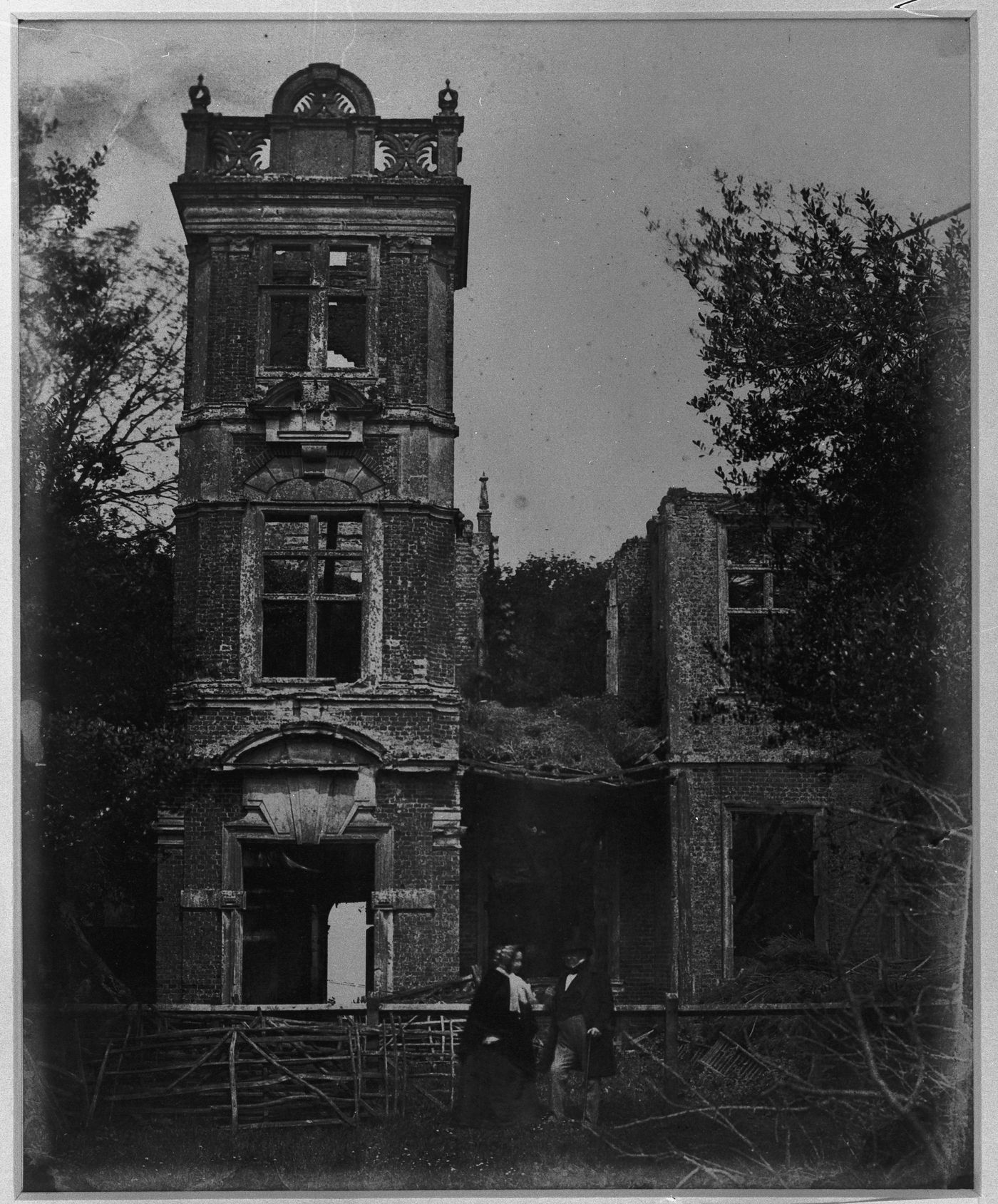 View of Houghton conquest, ruins of large house, two figures in