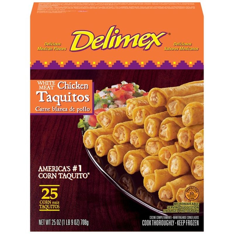 Delimex Taquitos Chicken Enjoy our taquitos as an appetizer, snack or part of your dinner, served with salsa, guacamole and sour cream. Our frozen taquitos are made with tender, white meat chicken, seasoned with cumin and ancho chilies and wrapped in a crispy corn tortilla. Shop chicken taquitos and read reviews at walgreens. Ready in minutes, easily prepare our chicken and cheese taquitos. Delimex Taquitos Chicken.