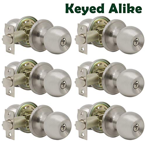 Probrico Satin Nickel Entry Door Knobs Combo Pack, 6 Pack Keyed Alike