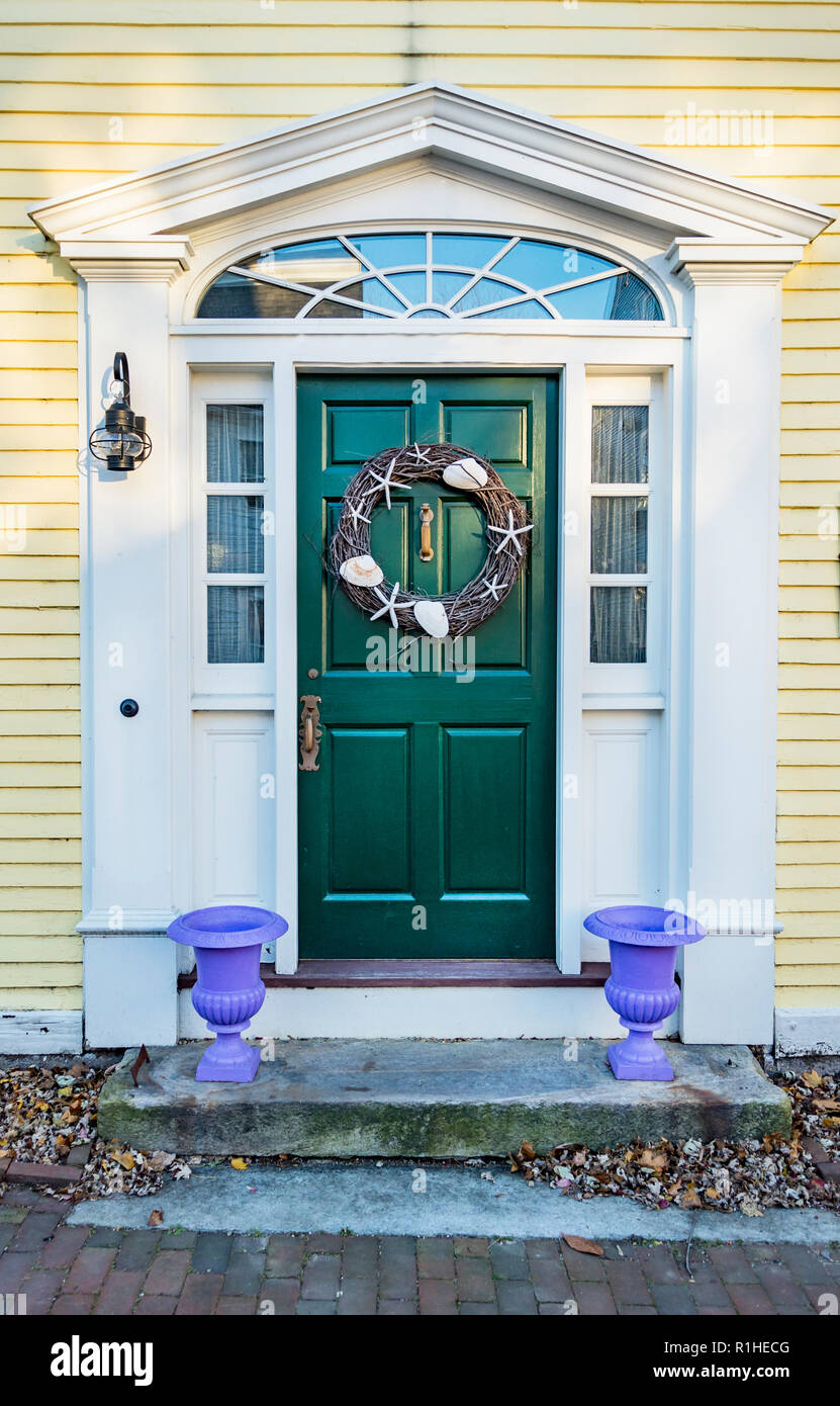 entrance of a typical residential house in Newburyporth MA Stock Photo