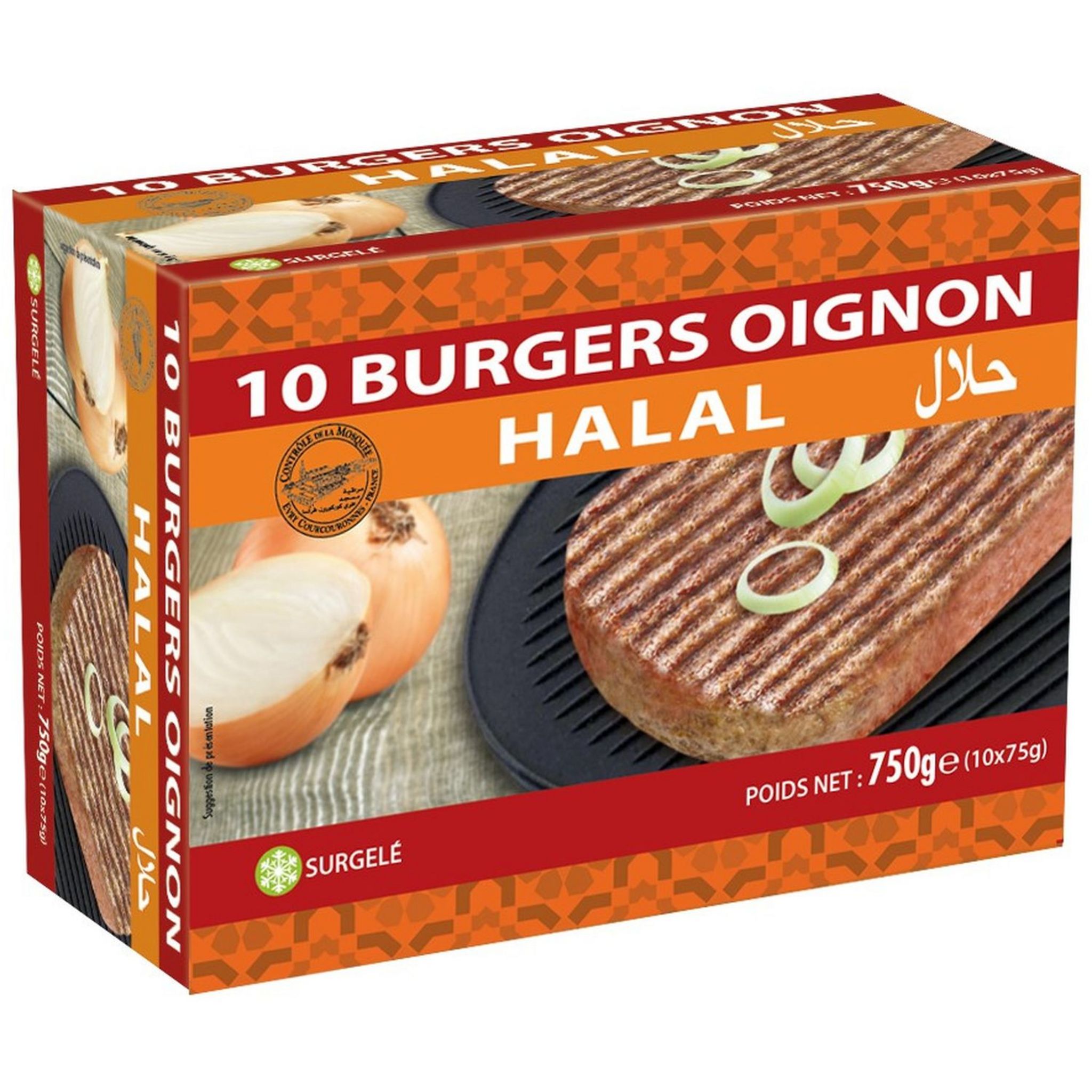 Burgers oignon halal 750g 10 pièces pas cher Auchan.fr