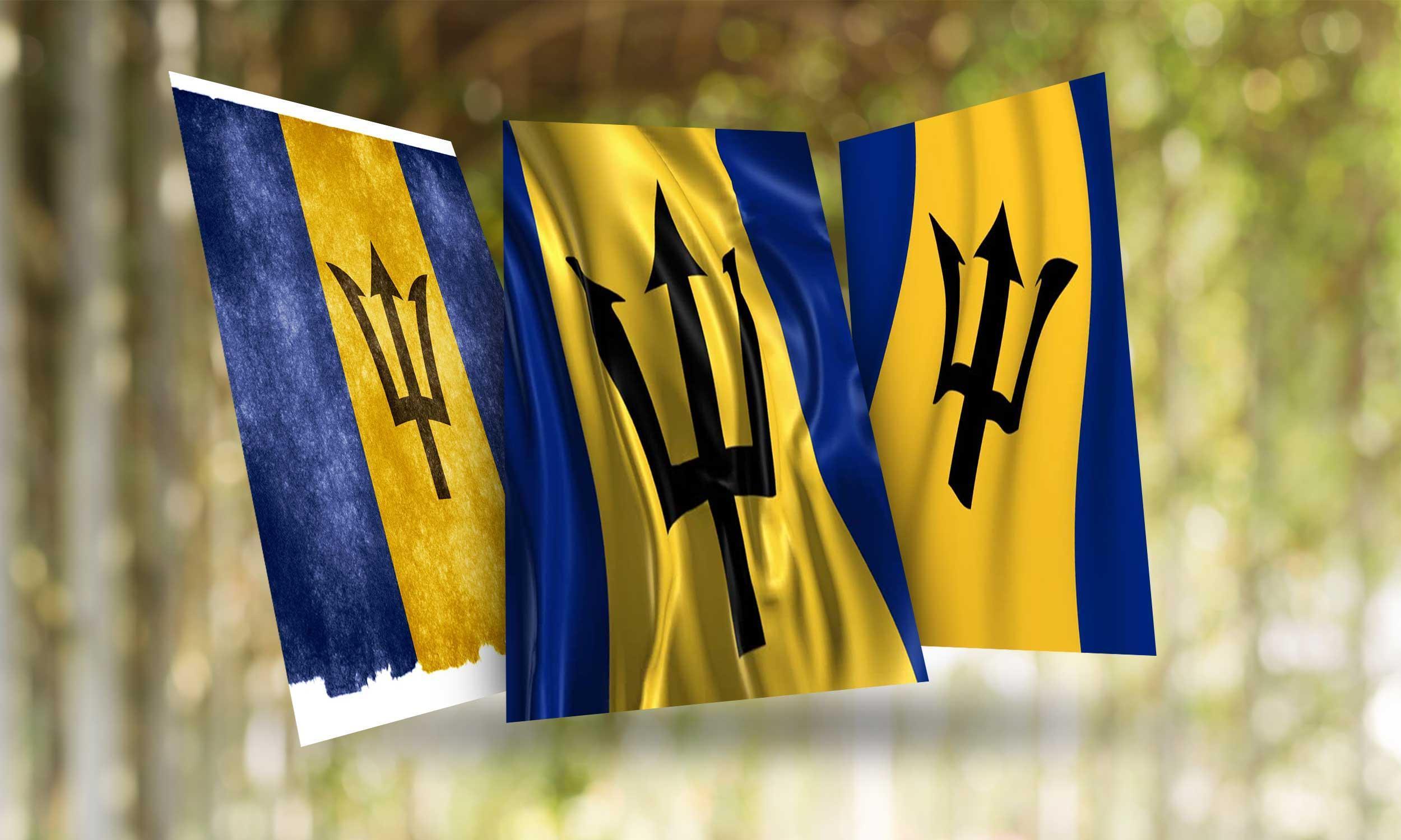 A broken trident in black is located in the centre. Being broken represents the freedom of the country, breaking from the historical and constitutional ties of colonization. A ultramarine and gold vertical tricolour with a black trident: A silver coin from the medieval kyivan rus era of prince volodymyr shows a trident symbol. The flag of barbados consists of two blue stripes and one yellow stripe between them, which depicts a black trident, which was borrowed. The two ultramarine blue bands represent the blue sea. The trident is a mythical symbol of the greek god of the sea. One of the most popular interpretations of the colors of the ukrainian flags is that the blue color represents the sky, while the yellow represents a wheat field. The head of a black broken trident is centered on the gold band of the flag. The blue parts of the barbados flag represent the sky and the sea, while the yellow stands for the sand.